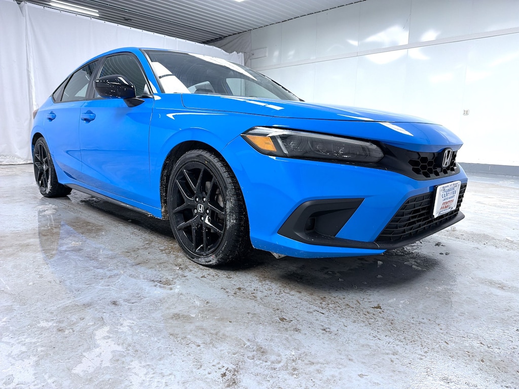 CARFAX One-Owner. Certified. 2023 Honda Civic Sport FWD 2.0L I4 DOHC 16V CVT Passes NH Inspection, Civic Sport, 4D Hatchback, 2.0L I4 DOHC 16V, CVT, FWD, Boost Blue Pearl, Gray w/Cloth Seat Trim, Air Conditioning, Automatic temperature control, Four wheel independent suspension, Power steering, Power windows, Rear window defroster, Remote keyless entry, Speed-sensing steering, Steering wheel mounted audio controls, Traction control.