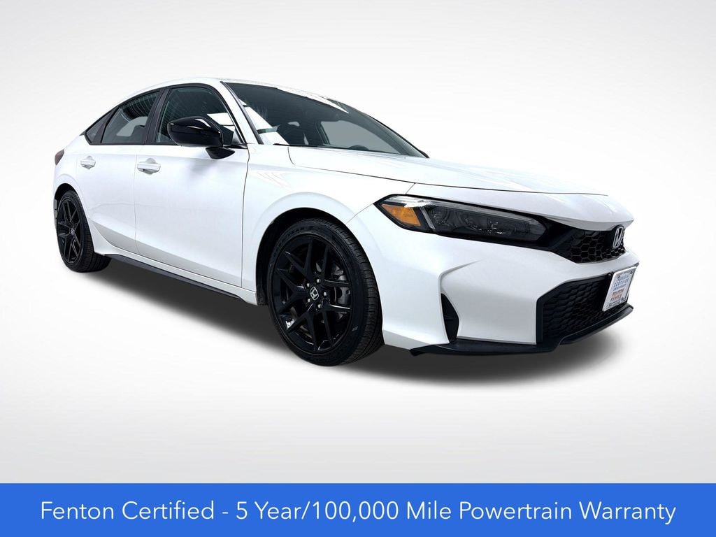 Certified. White 2025 Honda Civic Sport 4D Hatchback FWD CVT 2.0L I4 DOHC 16V 30/38 City/Highway MPG